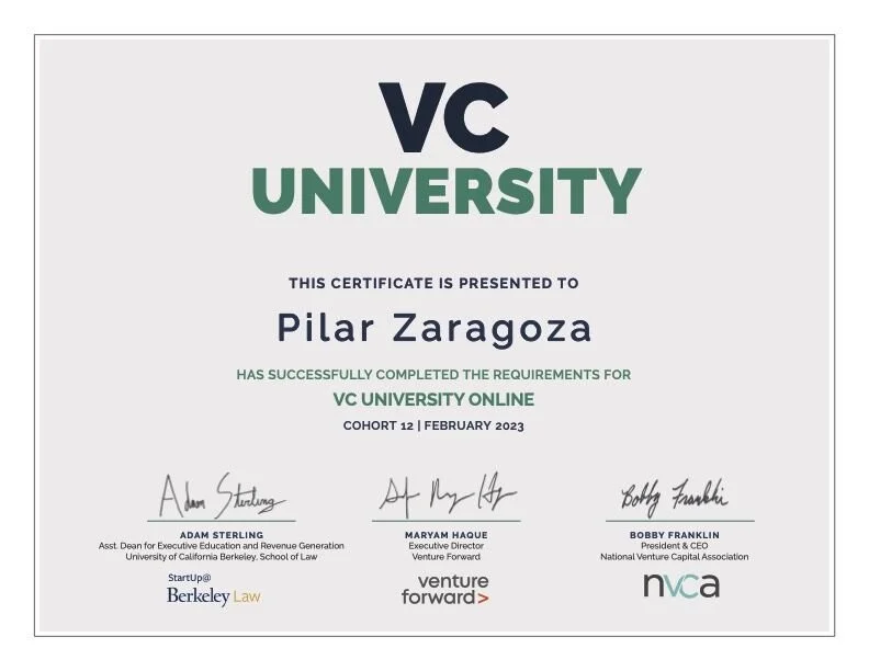 My thesis on emerging technologies for emergency response and disaster management became a startup, Lifeline Drones, that received pre-seed funding from New York University and UNICEF Innovation. I completed additional coursework in Venture Capital from the University of California Berkeley Law and Harvard. I have a certificate in Strengths-Based Management from Stanford.